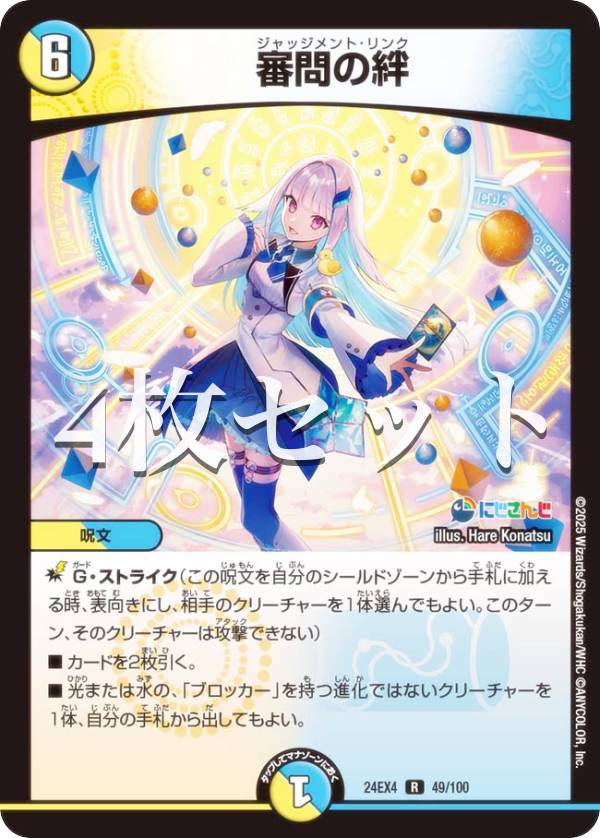 | 【4枚セット】デュエルマスターズ DM24EX4 49/100 審問の絆 (R レア) にじさんじコラボ・マスターズ 異次元の超獣使い (DM24-EX4)